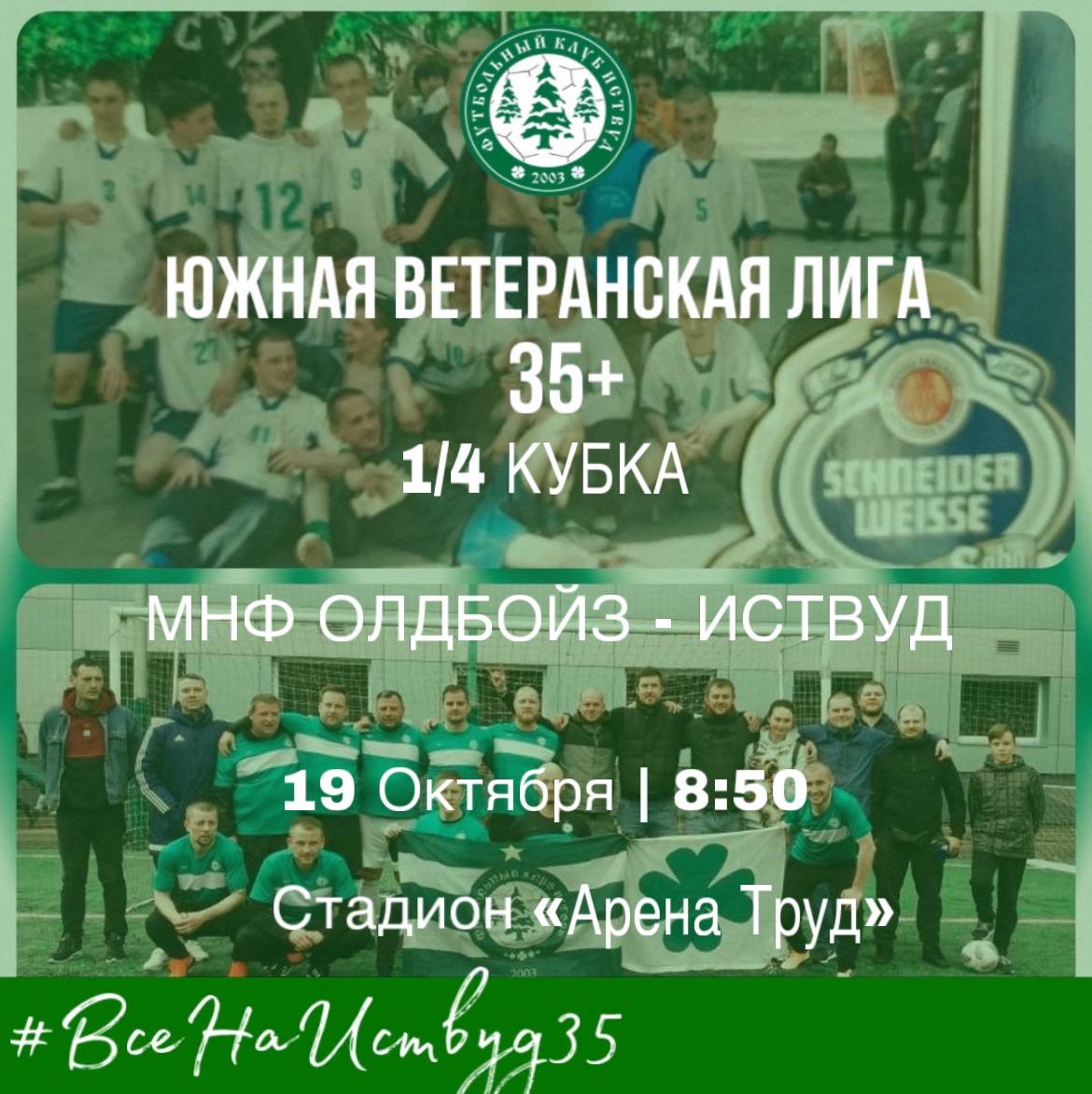 В четвертьфинале Кубка Южной ветеранской лиги 35+ "Иствуд" проиграл команде "МНФ ОлдБойс" 3:8. Голы в нашей команде забили Алексей Лапшов и Ансар Презняков, еще один гол соперник отправил в свои ворота.