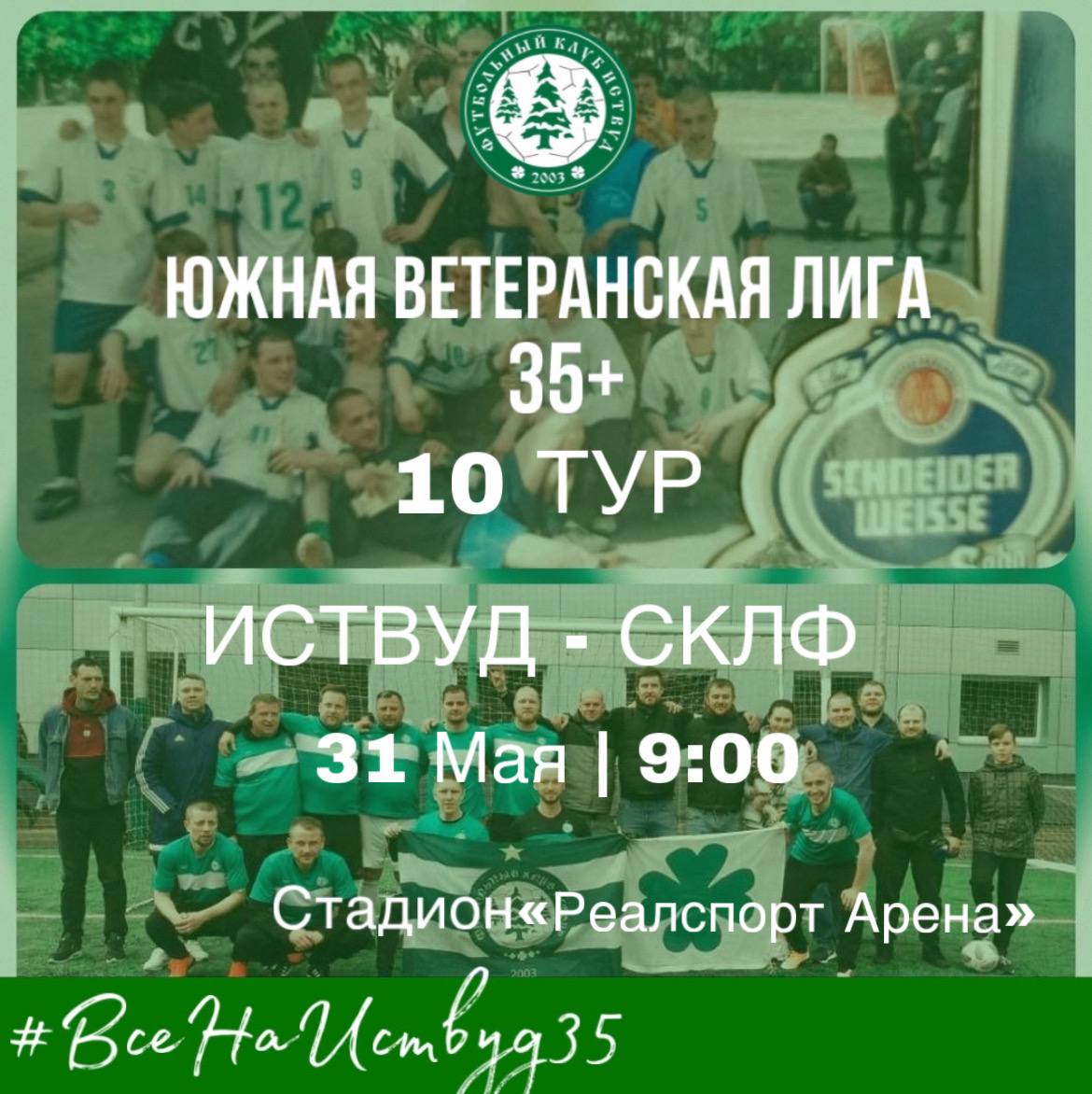 31 мая в 10 туре чемпионата 35+ "Иствуд" одержал победу над командой "СКЛФ" 4:1. Дубль на счету Евгения Масалкина, по одному голу у Андрея Финашина и Ильи Сидорова.