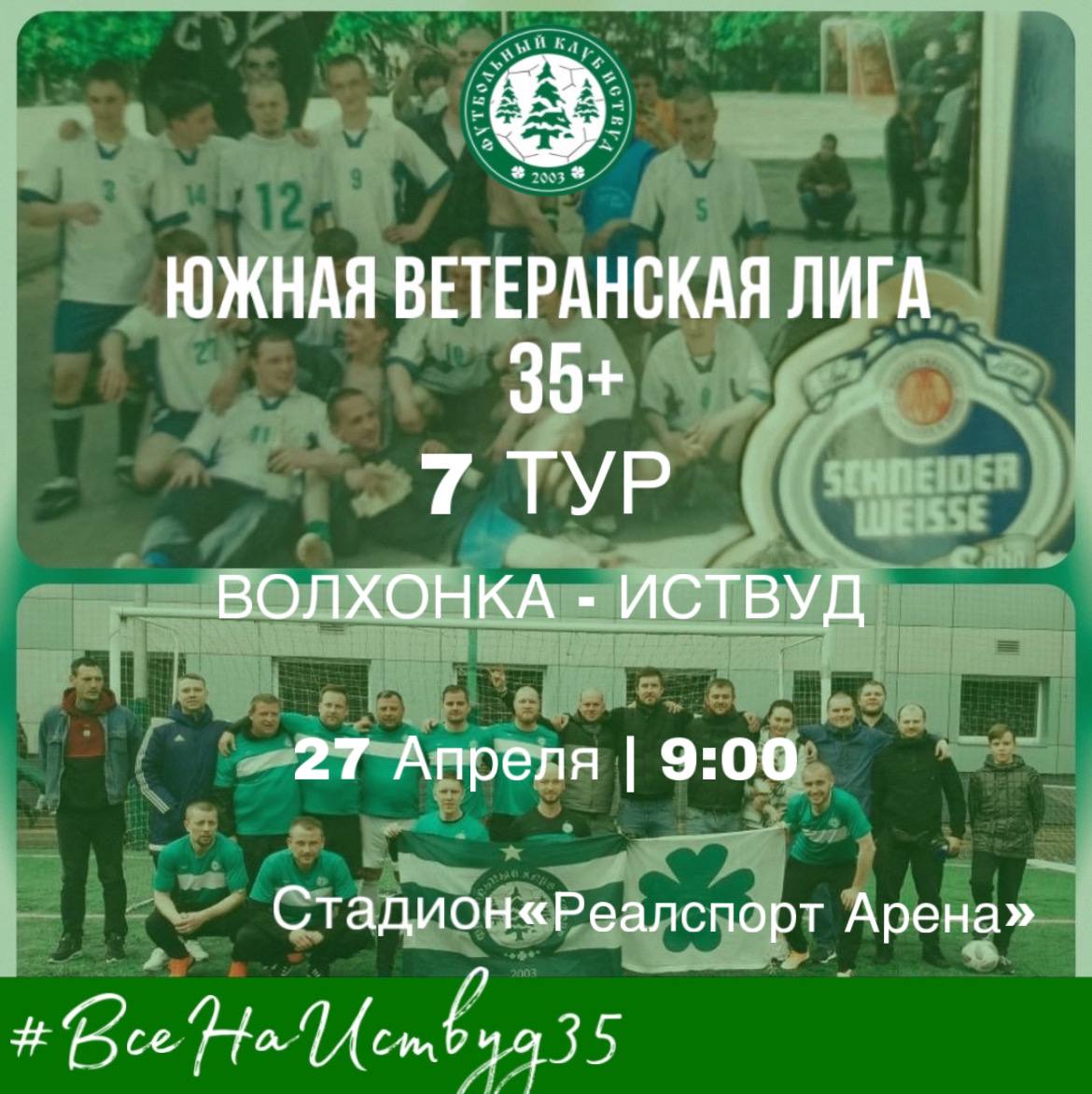 В 7 туре чемпионата 35+ Южной ветеранской лиги "Иствуд" выиграл у команды "Волхонка" со счетом 3:1. Голами отметились иствудцы Кирилл Поярков, Илья Сидоров и Евгений Коптев.