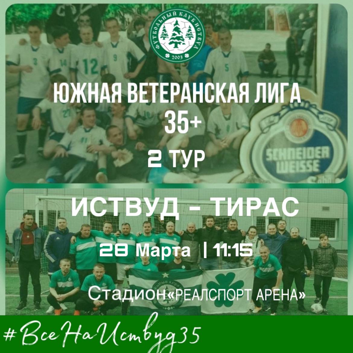 В субботу во 2 туре чемпионата 35+ "Иствуд" переиграл команду "Тирас" 7:3. Хет-трик на счету Евгения Коптева, по одному голу у Антона Савкина, Кирилла Пояркова, Артема Семенова и Андрея Финашина.